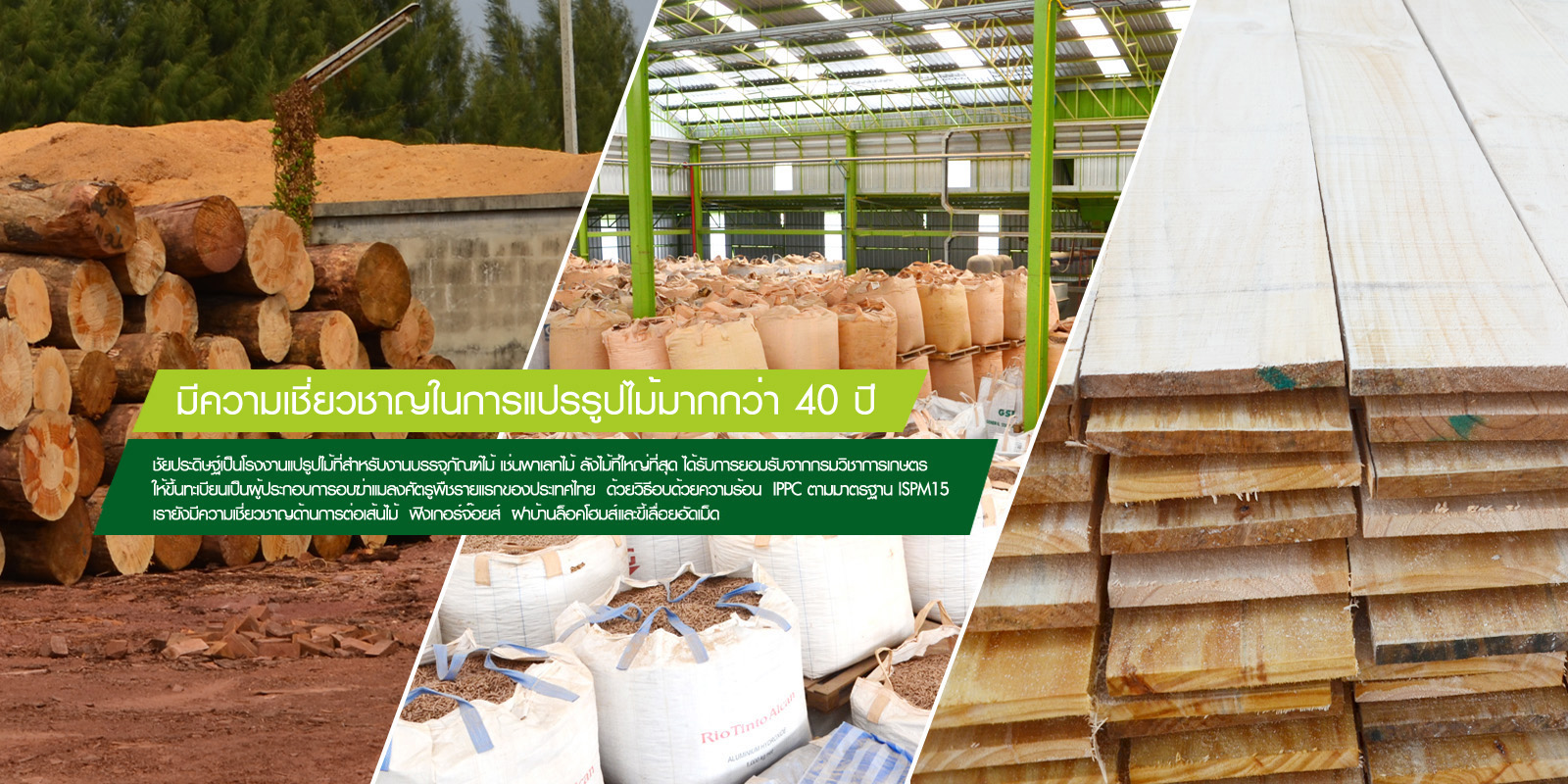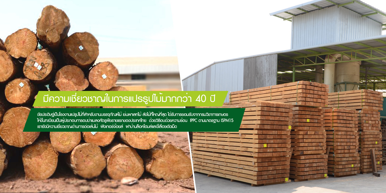 โรงงานแปรรูปไม้มากว่า 5 ทศวรรษ แปรรูปไม้จากไม้เศรษฐกิจ นำเข้าไม้ซุงสนเพื่อแปรรูป แปรรูปไม้ซุงยางนา ไม้ทุเรียน และไม้เบญจพรรณ ผลิตพาเลทไม้ ปอกไม้วีเนียร์ Veneer เพื่อผลิต LVL สำหรับพาเลท ลังไม้ และงานโครงสร้าง พาเลทไม้